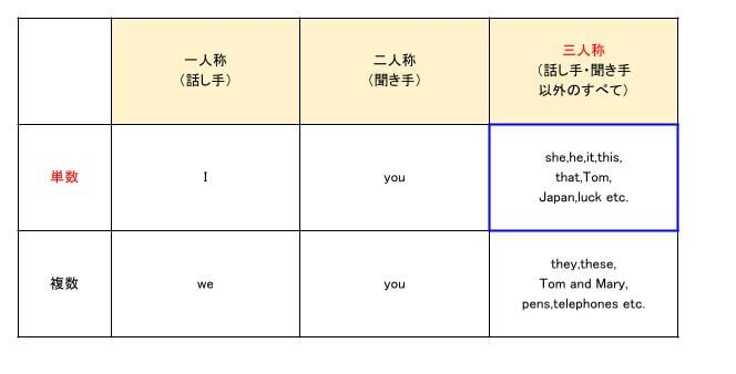そして、三人称とは「一人称と二人称以外のすべての名詞」のことを指します。