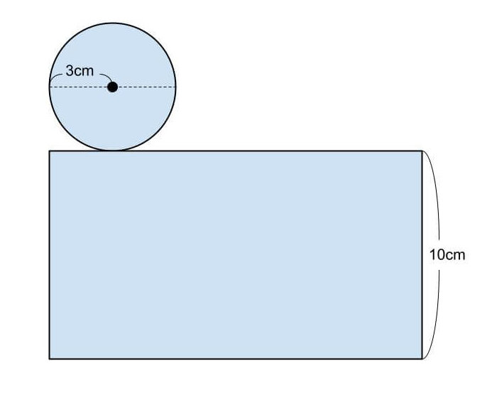 円柱の表面積は、2つの合同な円(2つの底面)と、長方形(側面)の面積の和なので、