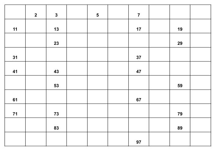 「2、3、5、7、11、13、17、19、23、29、31、37、41、43、47、53、59、61、67、71、73、79、83、89、97」