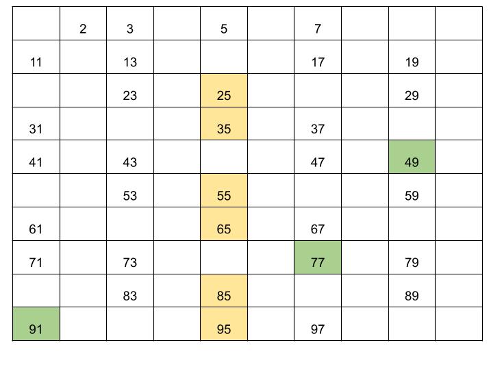 100までには25個の素数があります。この程度なら頑張れば覚えられそうですね。