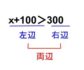 不等式の左側を左辺、右側を右辺といい、左辺と右辺を合わせて両辺といいます。