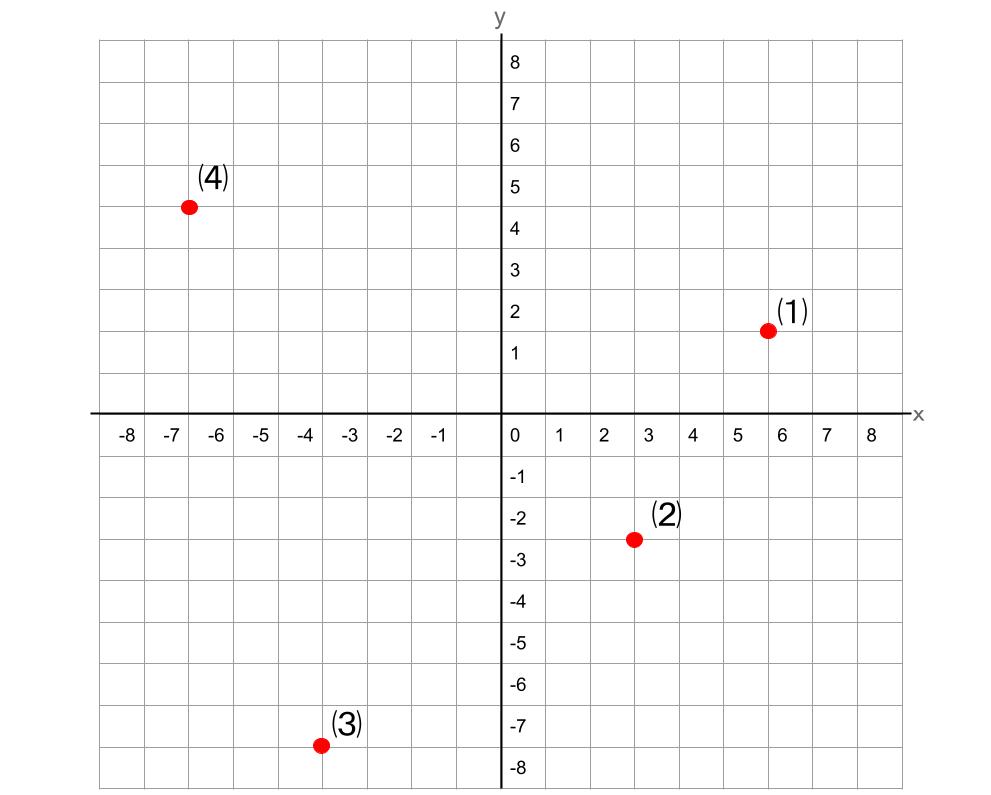 座標を答える場合は、(1,1)、(-3,-6) など、左にx座標を、右にy座標で表します。